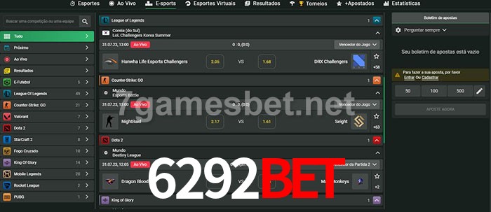 O 6292bet oferece uma grande seleção de opções de apostas em e-sports com probabilidades competitivas